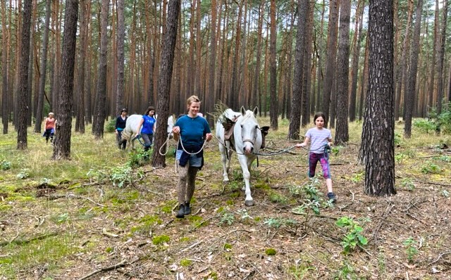 Aus dem Zelt heraus hört ihr Hufgetrappel, blähende Nüstern und Grillenzirpen. In den ersten Morgenstunden beobachten wir die Herde aus der Ferne. Nach und nach nähern wir uns ihr an und finden Vertrauen. Wir erfahren durch Beobachtung, Begegnung und Berührung mehr über unsere großen vierbeinigen Begleiter. Lasst uns gemeinsam erkunden, was wir durch die Pferde über Präsenz und Selbstfürsorge lernen können und wie ganz ungeahnte Fähigkeiten im Kontakt mit ihnen entstehen. Spiel und Spaß kommen dabei natürlich auch nicht zu kurz. Unsere Zusammenkunft ist ein Großzelt und unsere Wärmequelle an kühlen Abenden das Lagerfeuer. Wir laden euch ein, von den Tieren zu lernen, ohne zu reiten. Das ist auch etwas für Jungs und für alle ohne Pferdeerfahrung geeignet!